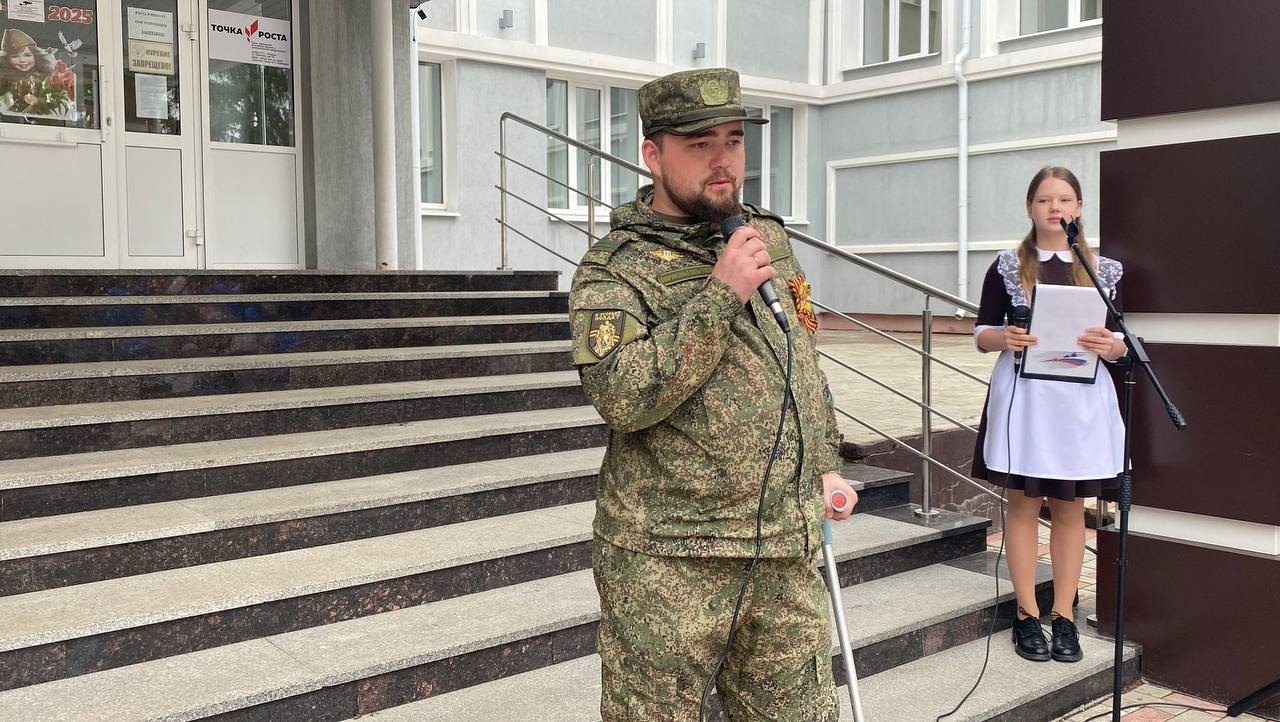 Перед школьниками и педагогами выступили участник специальной военной операции и директор школы. Они произнесли проникновенные слова о значении Победы и важности сохранения исторической памяти.