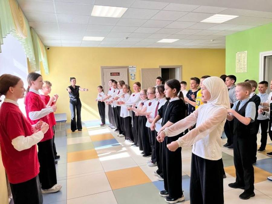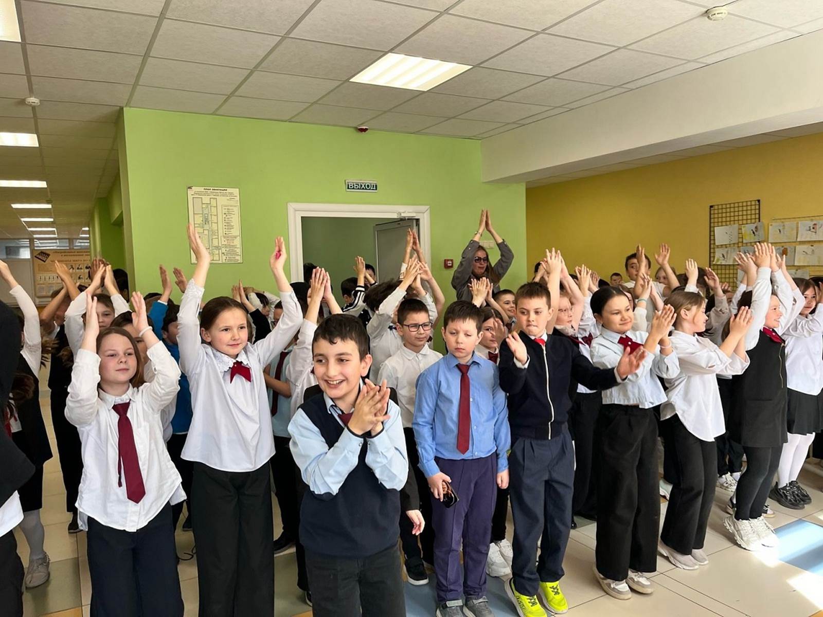 Башлангыч мәктәп укучылары бергәләп күңелле зарядкада катнаштылар. Зарядканы тәрбия буенча директор киңәшчесе Анна Кахраман, тәрбия буенча директор урынбасары Марина Шаронова һәм педагог оештыручы Майя Заһретдинова оештырды. Укучылар үзидарәсе лидеры Артур Шабалин җитәкчелегендәге «Беренчеләр хәрәкәте» ндә катнашучылар: Лия Хисамова, Вероника Суханова, Алена Меркулова, Аделя Садриева, Полина Степанова зарядка ясадылар.