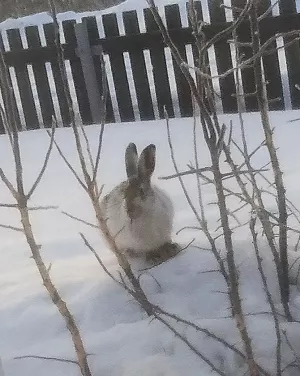Зайчик нагрянул в огород нашего подписчика, чтобы полакомиться нежными ветками!