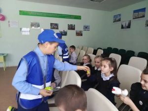 Юные инспекторы движения Именьковской школы провели для учеников младших классов полезную беседу о световозвращающих элементах.