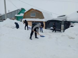 Юнармейцы объединения «Патриот» Центра внешкольной работы на базе Лаишевской школы № 2 имени Героя Советского Союза Б. К. Кузнецова помогают пожилым людям справиться с зимними трудностями.