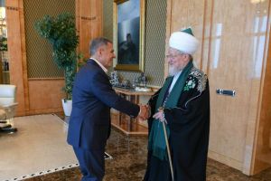 Рөстәм Миңнеханов Россиянең Баш мөфтие Тәлгать Таҗетдингә «Дуслык» ордены тапшырды