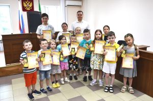 В Лаишевском районном суде чествовали юных художников выставки, посвященной Дню защитников Отечества и 80-летия Победы в Великой Отечественной войне.
