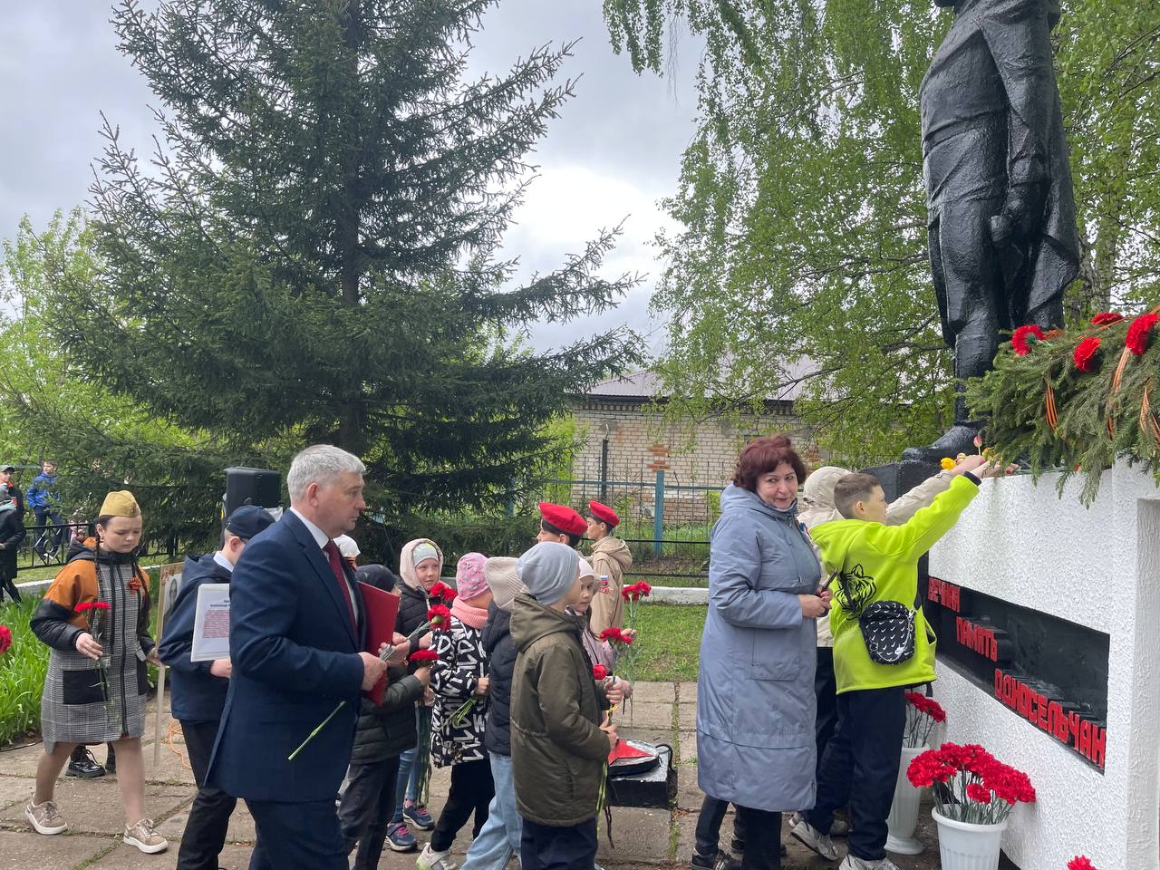 Жители собрались у памятника землякам, погибшим в годы Великой Отечественной войны. Приходили семьями, с детьми.