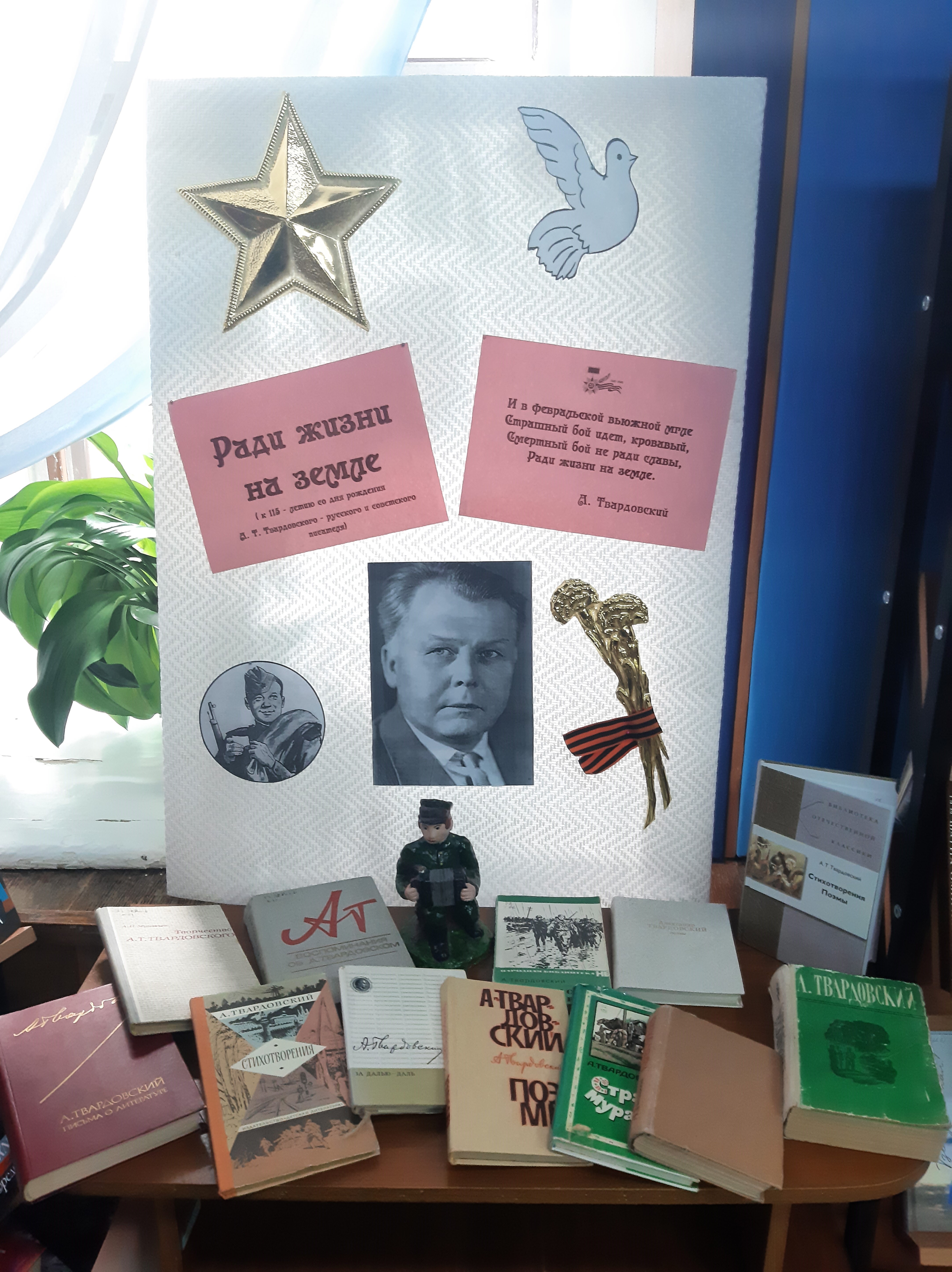 Экспозиция посвящена 80-летию Победы в Великой Отечественной войне и 115-летию со дня рождения выдающегося поэта и редактора журнала «Новый мир» Александра Трифоновича Твардовского.