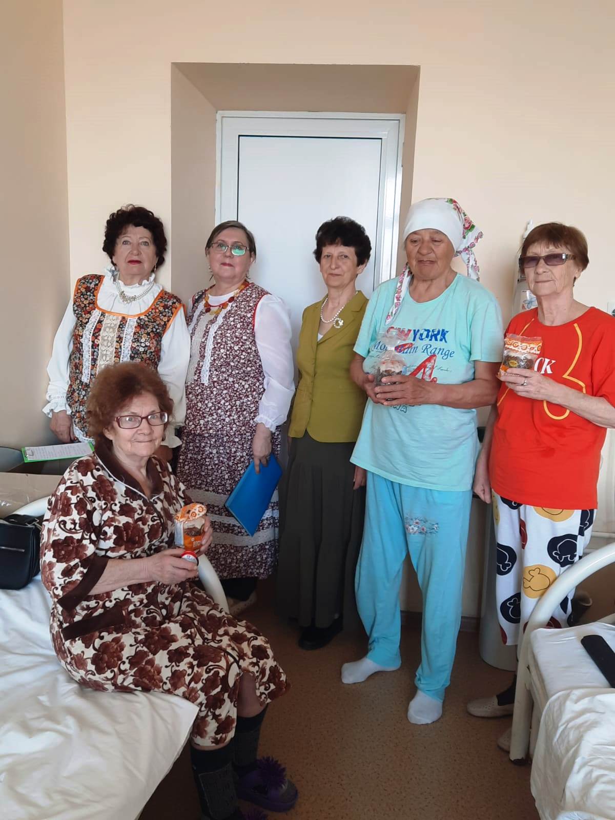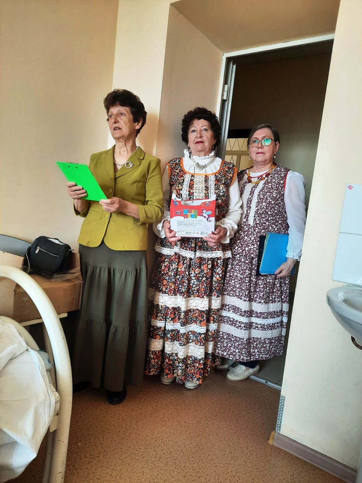 Особую атмосферу визиту придали русские народные костюмы, в которые были одеты волонтеры Ордена Милосердия. Этот яркий и красочный элемент добавил праздничного настроения и вызвал улыбки на лицах пациентов.
