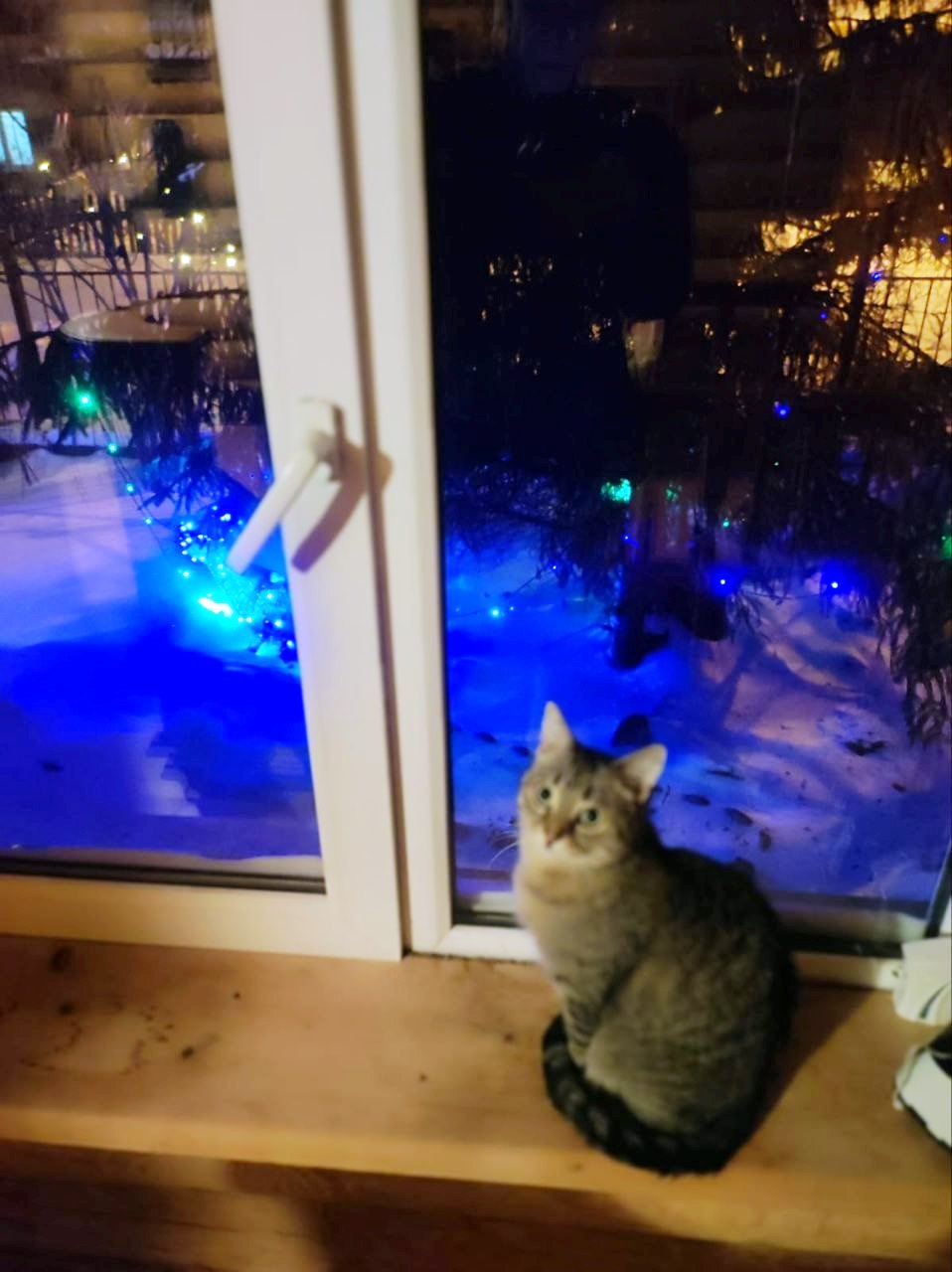 Наблюдает за огнями,