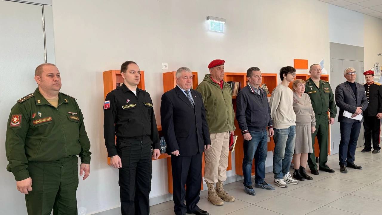 В зале собрались представители общественных организаций и ветеранского сообщества: Фарит Казаков («Союз танкистов России»), участник СВО Дмитрий Куликов, руководитель местного штаба «Юнармии» Владимир Чуприн, глава поселения Айрат Абдрафеев, директор лицея Владимир Трошин и ветеран-танкист Иван Тоневский.