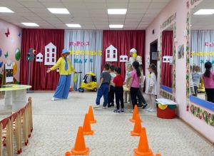 На уроке безопасности в детсаду «Рябинка» Незнайку обучали азам ПДД