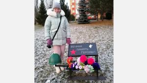 В День героев жители ЖК «Южный парк» в Усадах на улице Сиреневая возложили цветы к мемориалу
