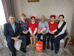 Ташкирмәндә тыл хезмәтчәне Алексей Кормачевка Бөек Ватан сугышында Җиңүнең 80 еллыгына бүләк һәм истәлекле открытка тапшырдылар.