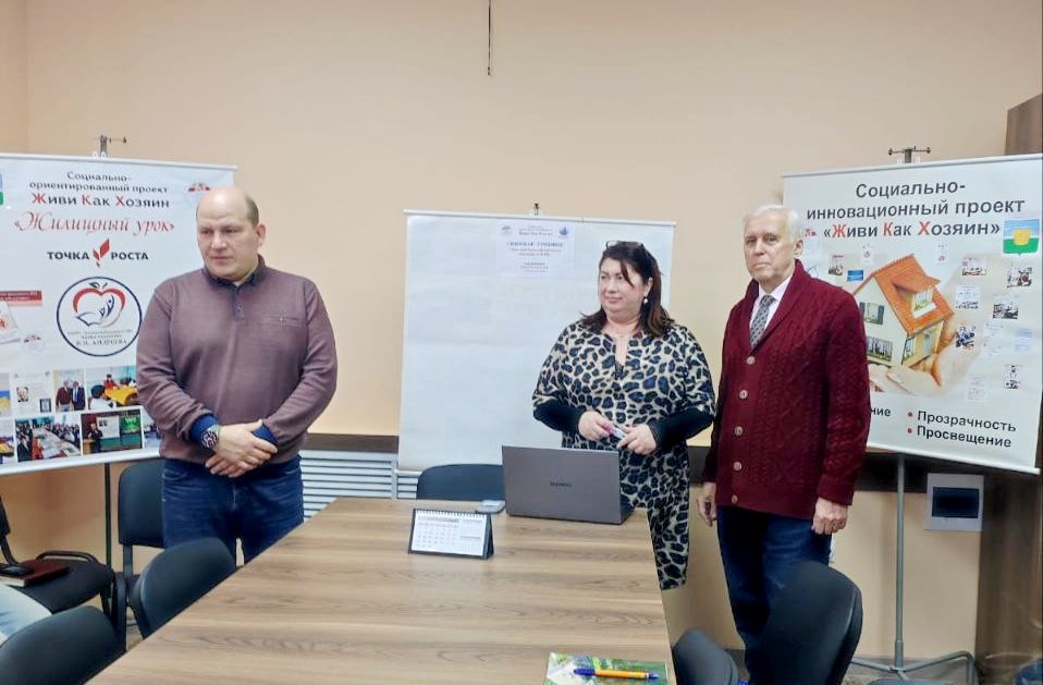 По завершении семинара-тренинга депутат городского совета, руководитель группы компаний «Жилищник» — партнер социально-ориентированного проекта «Живи Как Хозяин» Дамир Гайнутдинов (на фото слева) поблагодарил Владимира Ивановича (на фото справа) и Наталью Юрьевну (на фото в центре) за прекрасно проведенное мероприятие.