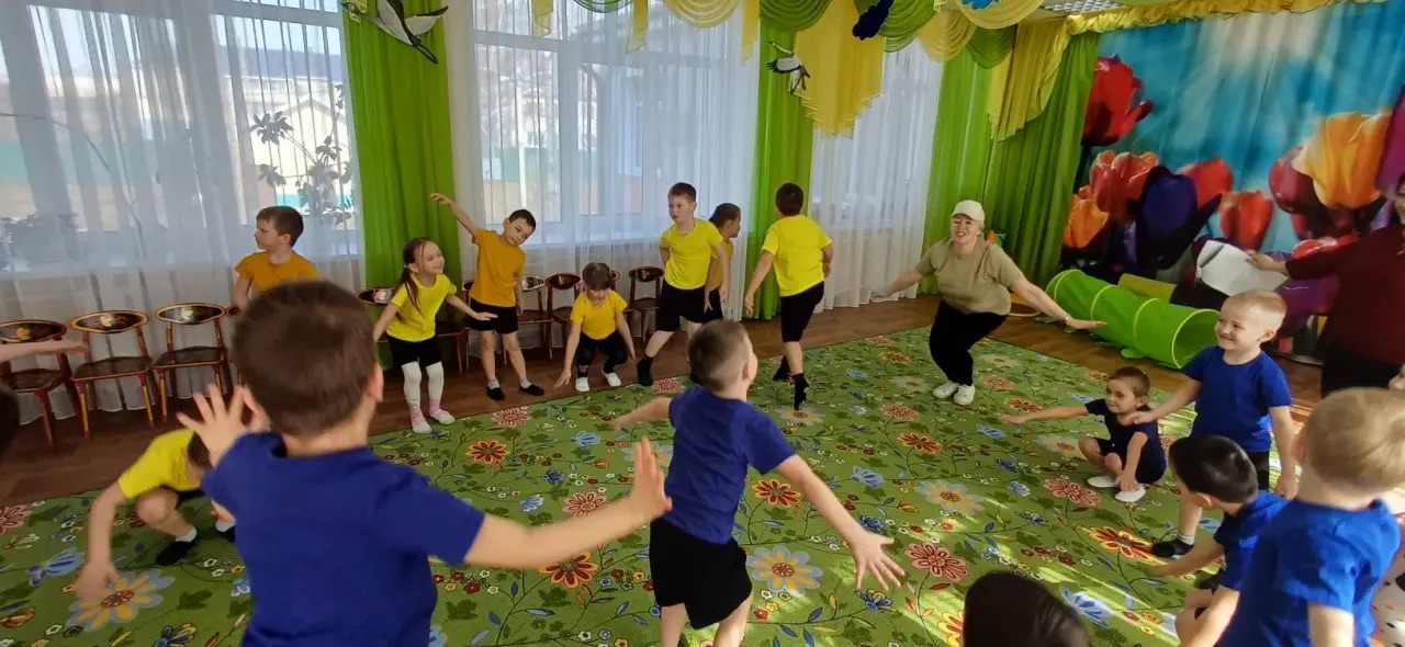 Физкультминутку «Мы зарядку делали — прыгали и бегали» под задорную песню «Барбариков».