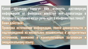 Какие признаки помогут вам отличить достоверную информацию от фейковых новостей или пропаганды в Интернете, особенно когда речь идет о конфликтных темах?