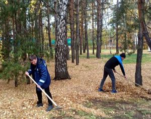 Сотрудники Молодежного центра «Волга» под руководством директора провели осенний субботник.