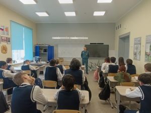 В гостях у Песчано-Ковалинского многопрофильного лицея «Гармония» побывал начальник Лаишевского пожарно-спасательного гарнизона Федор Кузнецов.