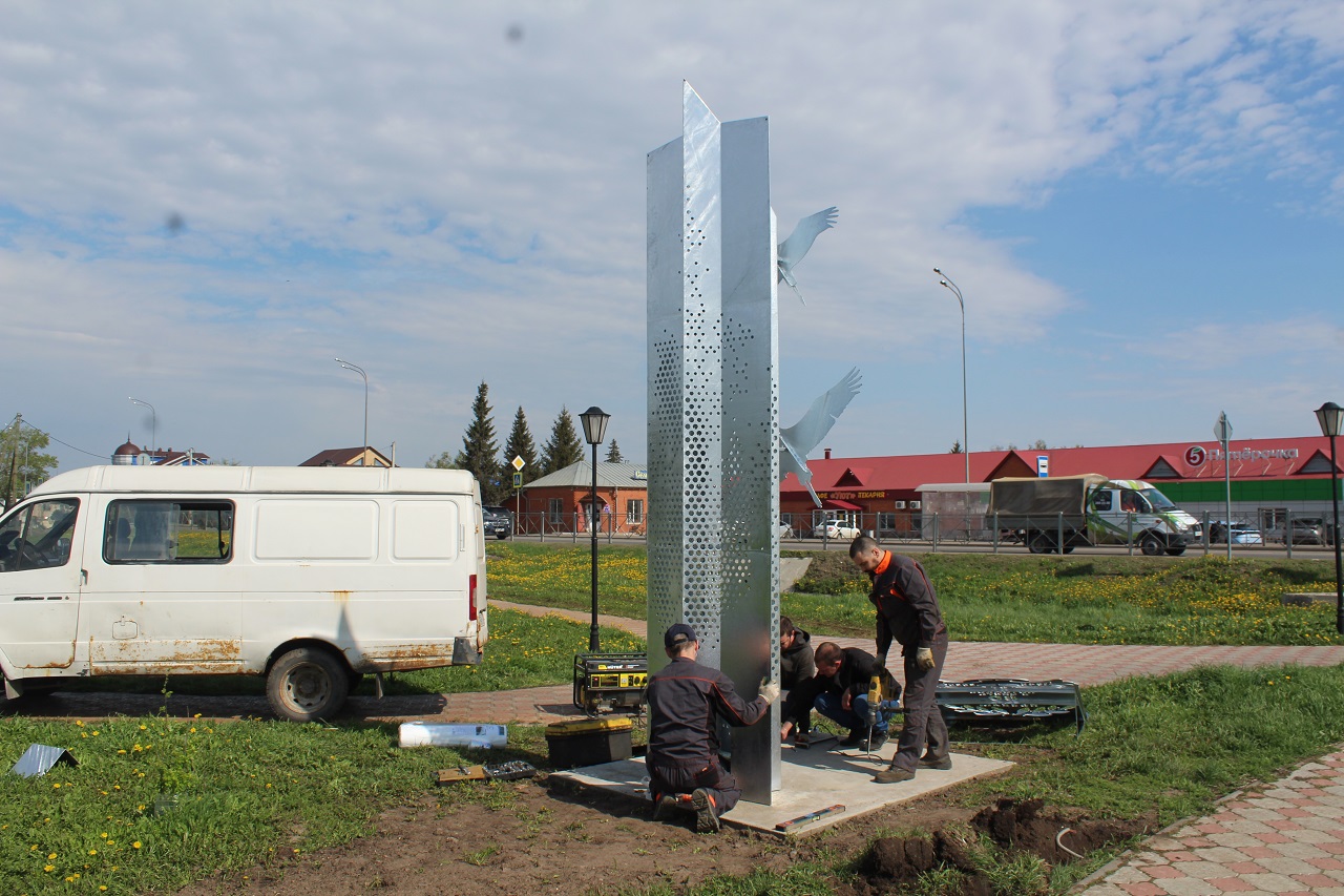 Фундамент в парке на улице Державина заложили еще в конце апреля. А сегодня утром был смонтирован сам памятник. Он представляет собой металлическую скульптуру в форме пятиконечной звезды, на которой расположились четыре журавля. У подножия обелиска расположилась памятная табличка: «От благодарных потомков в честь 80-летия Победы».