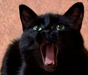 Черный, забавный, любимый домашний питомец участницы вступил в ряды участников конкурса.